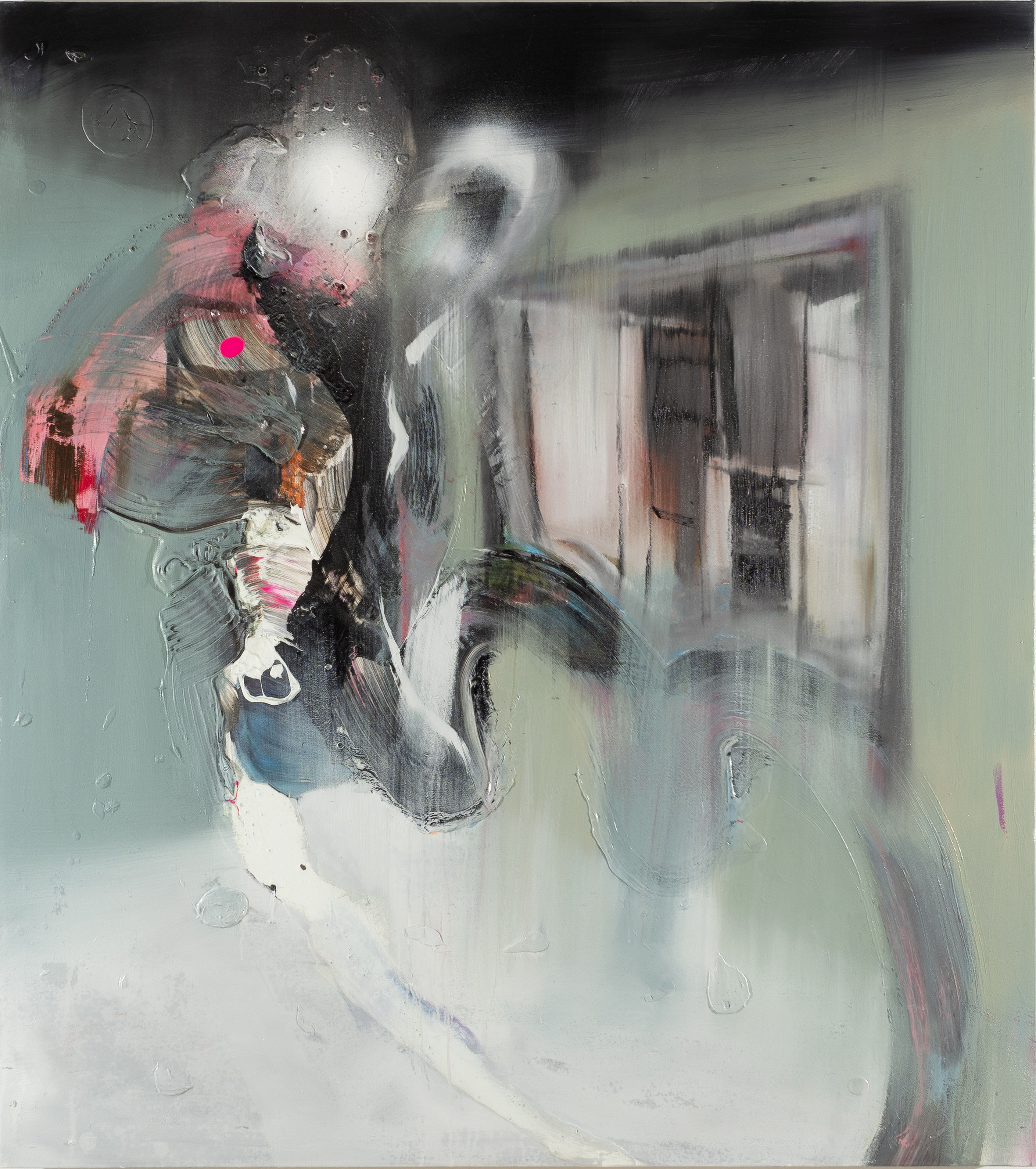 The leading roles in the Tampere based artist Viljami Heinonen’s works are characterized by grim human figures and the oppressive space that surrounds them, while in many pieces the context constructed around these figures is an abstract reference to the artist’s state of mind or a place that he finds important. A dreamy and surreal appearance creates a Kafka-esque atmosphere, and the colours and anxious characters recall Francis Bacon’s screaming portraits and crude, distorted human bodies.