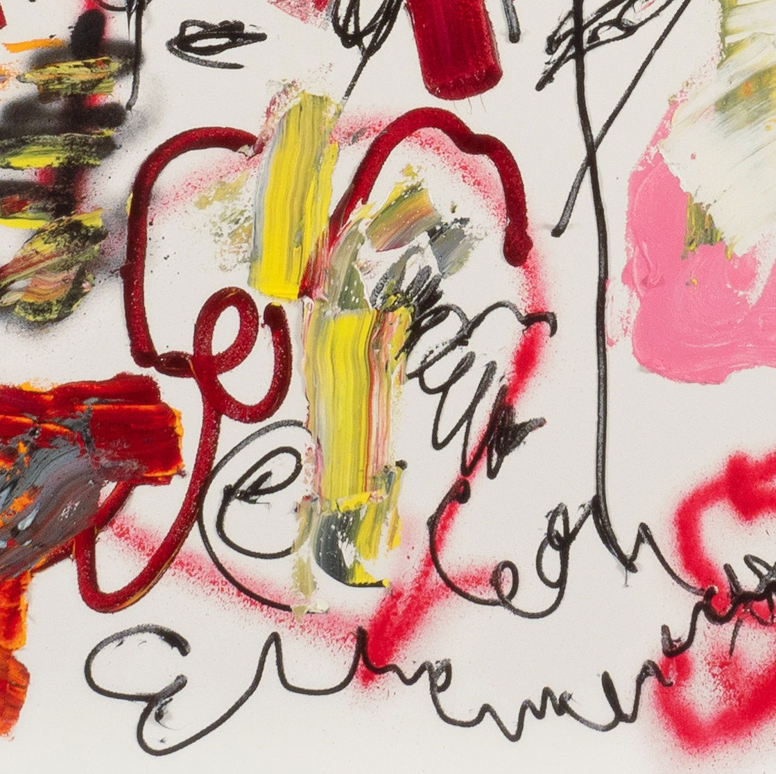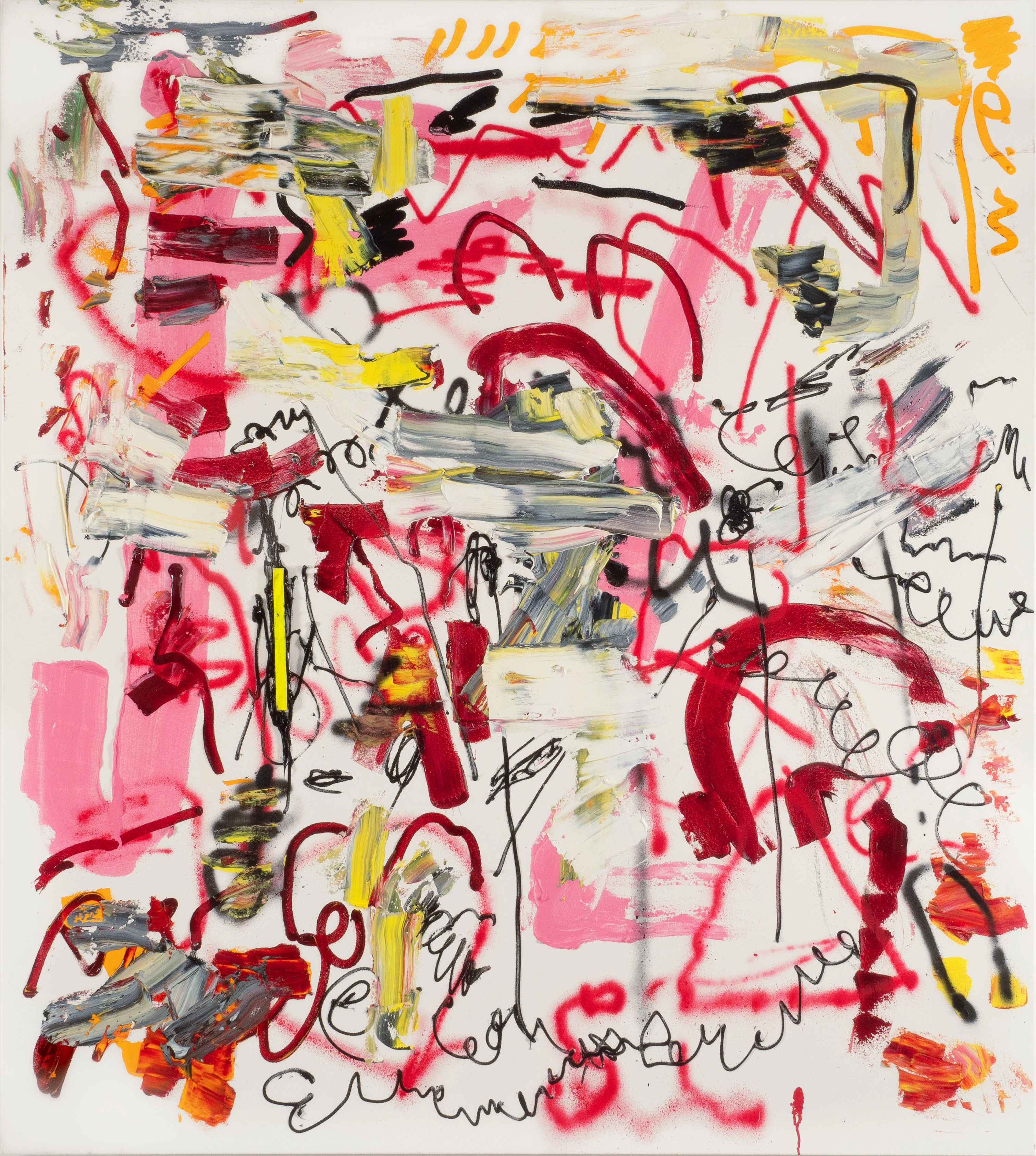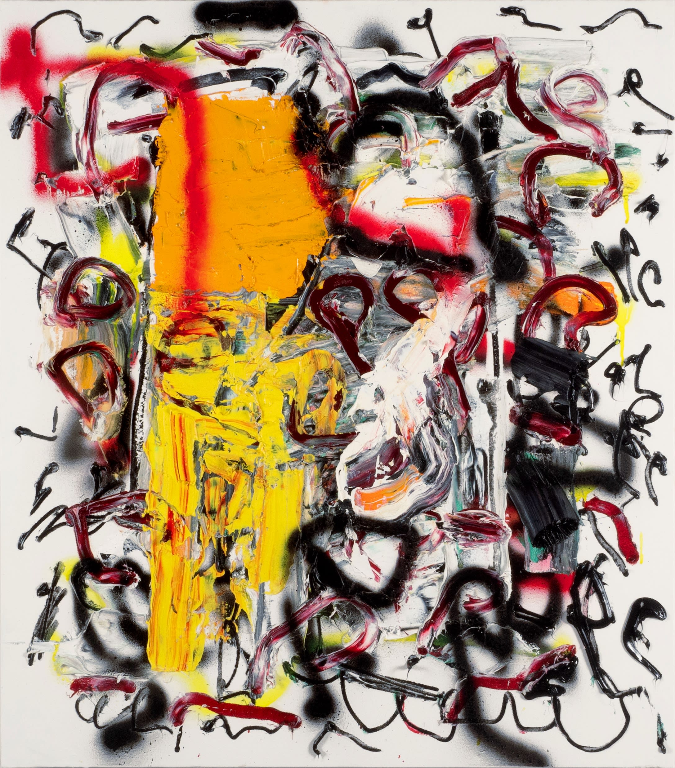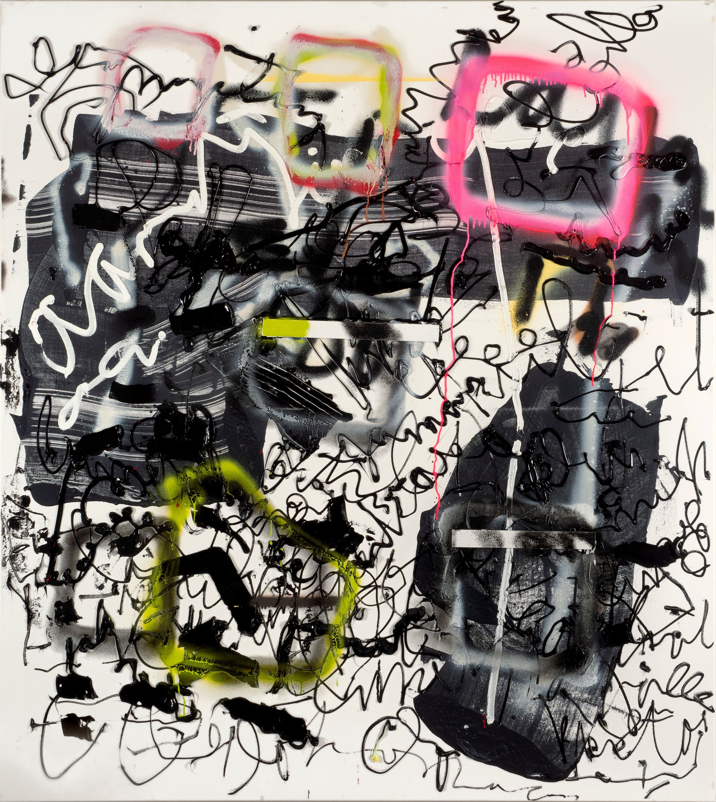 Acrylic, silicone, spray, collage, wood and oil on canvas