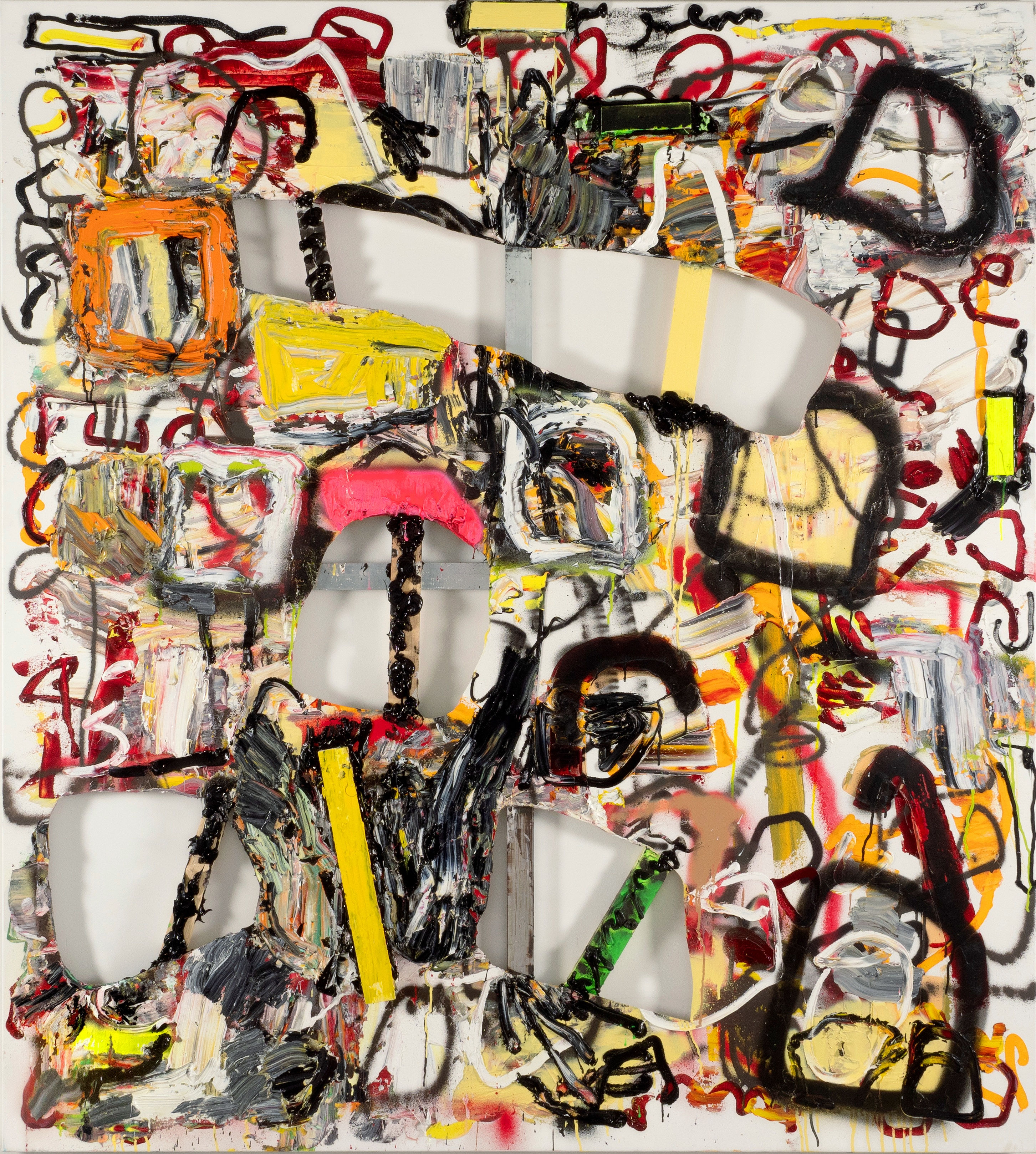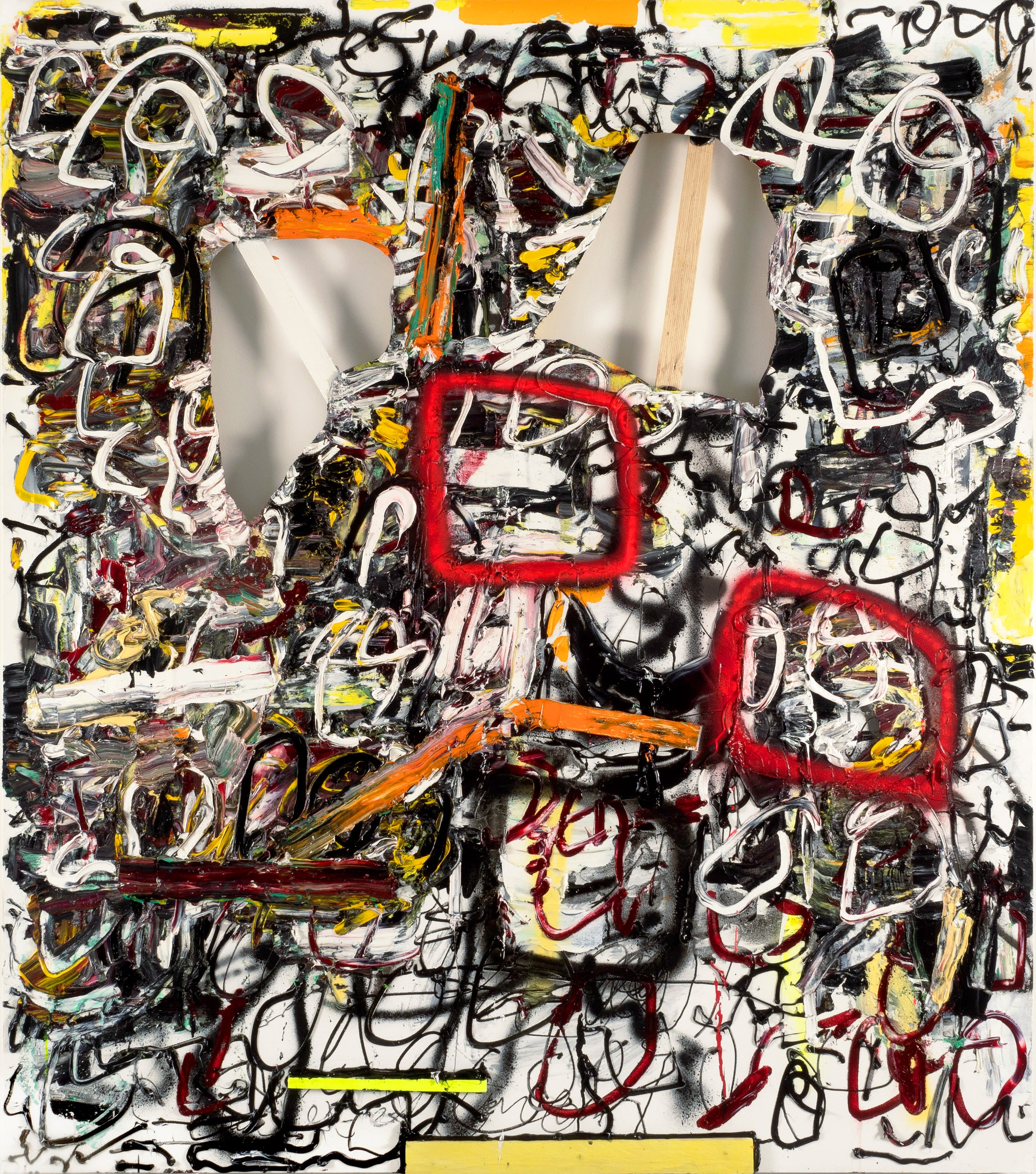Acrylic, silicone, spray, cut canvas, wood and oil on canvas