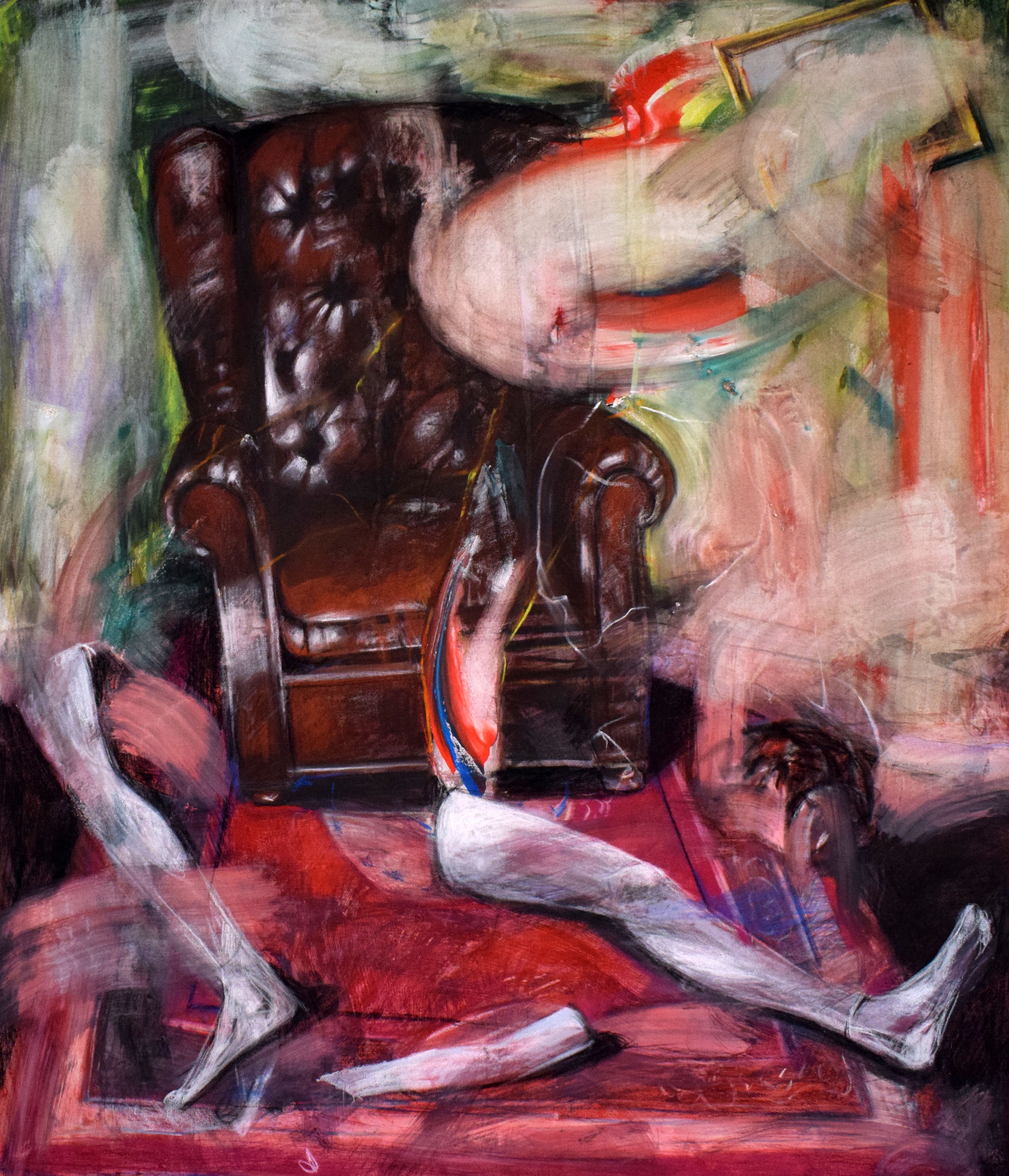 Viljami Heinonen creates dreamlike existential paintings, where figurative meets abstract. The multifaceted expression can be seen in the content as well; the way Heinonen combines different eras and themes from art history in his works. In addition to the study of human he studies space and movement and how these are related to one another. In his new body of work, instead of applying watercolor and gouache on paper, he is using it on canvas and therefore combining the lightness of aquarelle to the format usually associated with oil painting