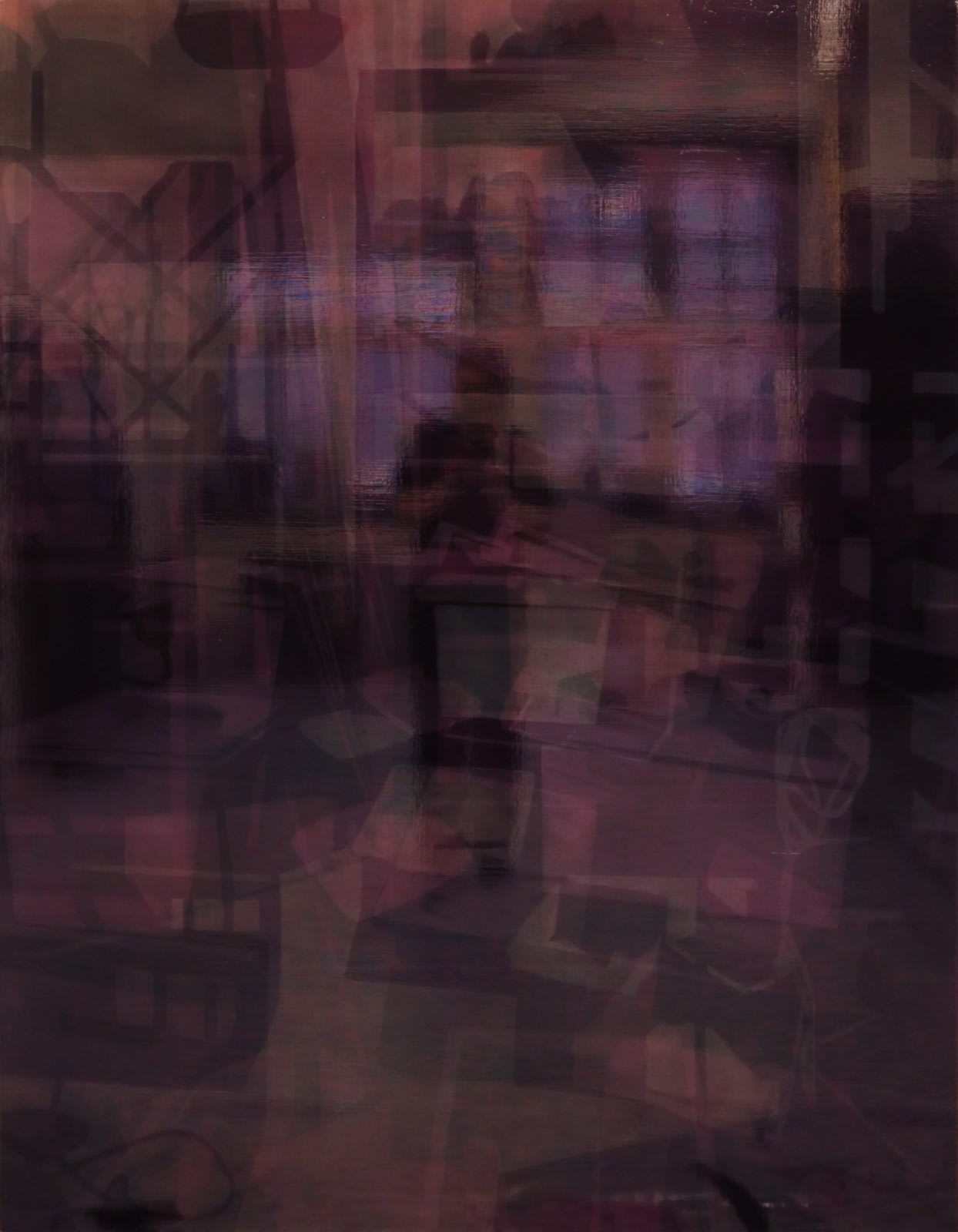 Tiina Pyykkinen’s reflective, polychromatic, site-specific works do not let the viewer off easily. The observer is one with the painting; as the viewer moves, the work is transformed in both its colour and content, since both the people around it as well as the surrounding space are reflected in it. The large-format paintings irritate the visual sense intentionally and undermine the relationship between knowledge and perception.